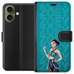 Apple iPhone 17 Plånboksfodral Valorant Zoey affisch Riot Games agent gaming fanart anime stil blå bakgrund karaktärsdesign konst