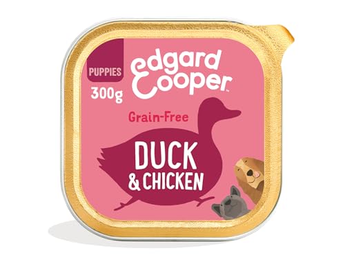 Edgard & Cooper Våtmat för hundar valpar valp junior pate hundar naturlig spannmålsfri burk 300 g x 18 anka & färsk kyckling, hälsosam mat välsmakande och balanserad, färskt kött