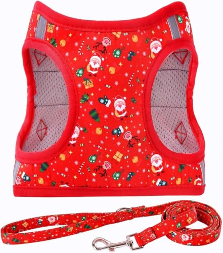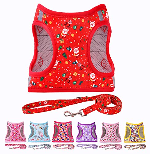 Moonpet Step in Air juldag hundsele koppel set – alla väder reflekterande icke-dragande blommönster vadderad nät väst sele för katter valp extra små medelstora hundar – XXS
