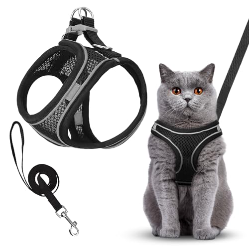 Supet Set med kattsele och koppel för promenader, katt och liten hundsele i mjuk nätsele, justerbar kattväst, sele med reflekterande rem, bekväm passform för husdjur, kattunge, valp, kanin