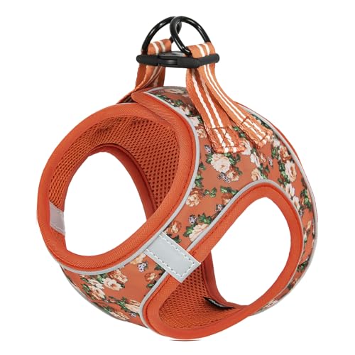 HEELE Sele Hund Liten Mjuk Hundsele Air Mesh Justerbar Säker Kontroll Valp Sele Väst Hundbröstsele för Promenader, Löpning, Träning, Blomma Orange, XS