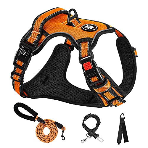 NESTROAD Orange Sele Hund, Anti Drag Hundsele och Koppel Sats, Storlek S för Hundsele Valp av Nacke 28~38CM Bröst 38~53CM, Reflekterande Justerbar Sele Liten Hund för Träning Gående