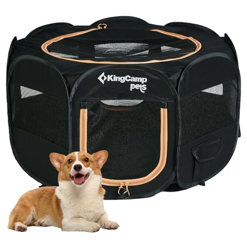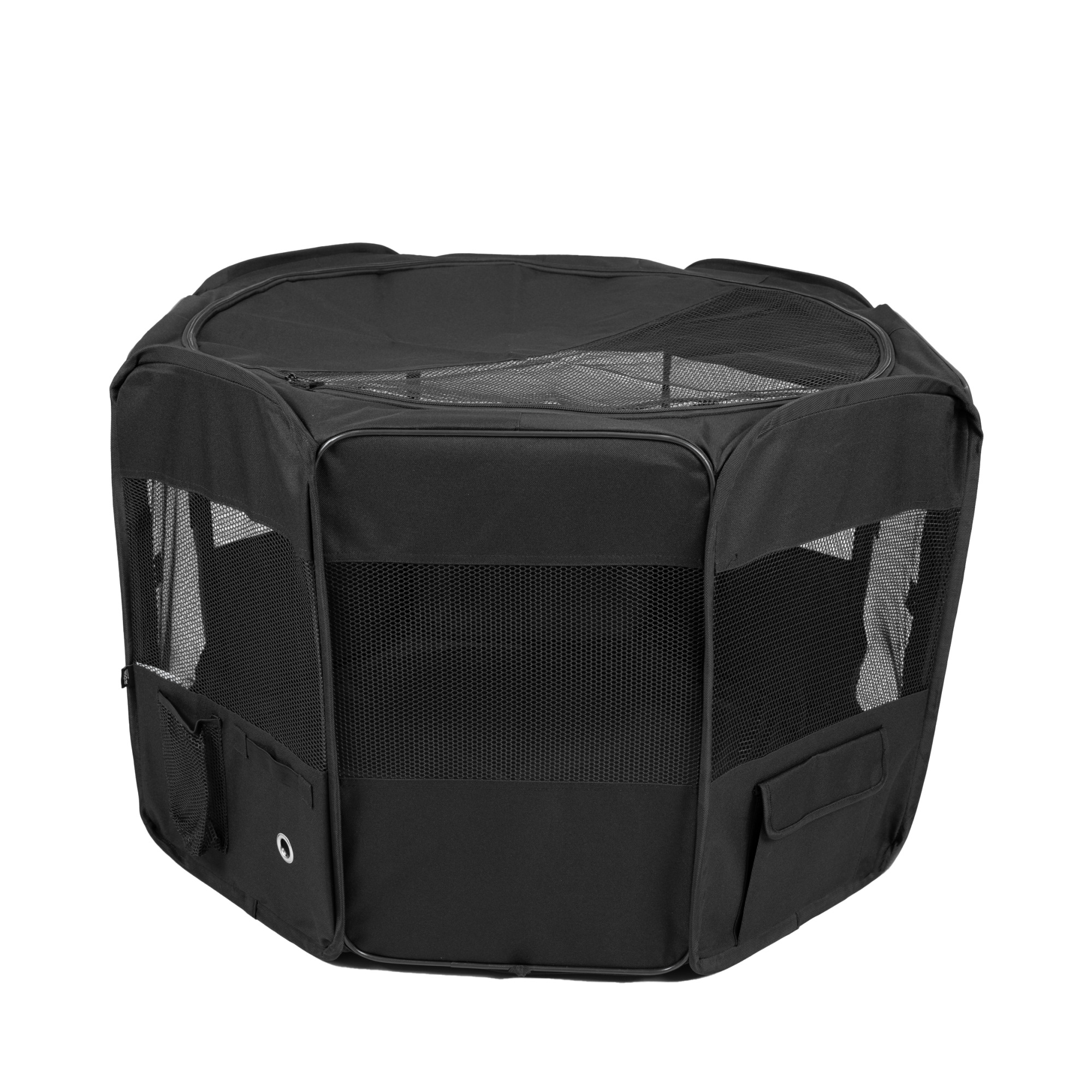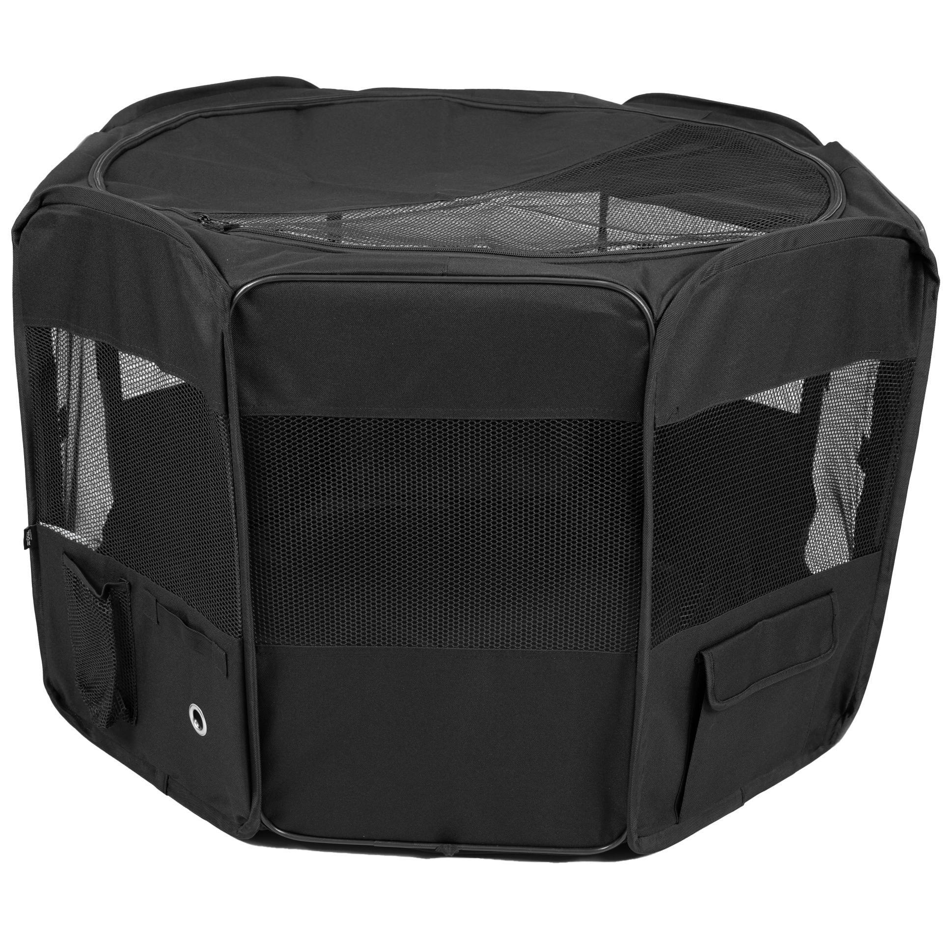 KingCamp valphage, lekhage för husdjur, bärbar valphage, lekhage för hundar, katter, valpar, inomhus och utomhus, för hemmet med bärväska och pinne, svart S