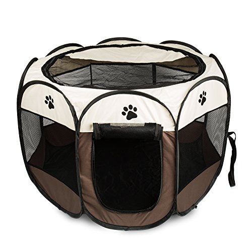 BIGWING Style valphage, bärbar och hopfällbar lekhage i tyg för valp, hund, BIGWING Style Pet Play Pen Portable Foldable Puppy Dog (Kaffe, S, 1)