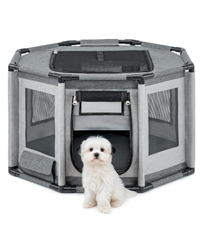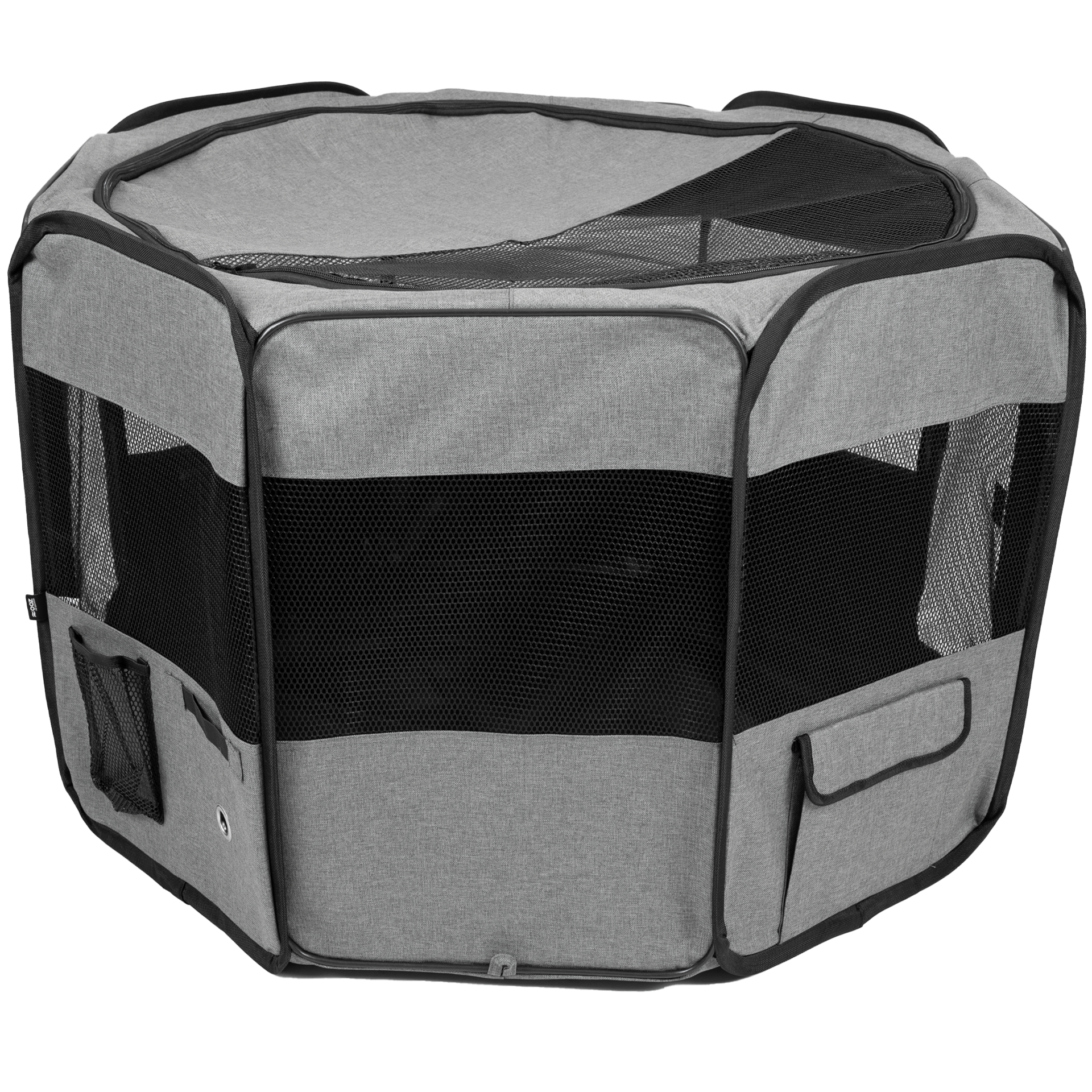 lionto Valphage i oxfordtyg, andningsbart nät med dragkedja & sidoficka, utehage för hundar & katter med PVC-ram, åttakantig hundbur, 72x72x43 cm, grå