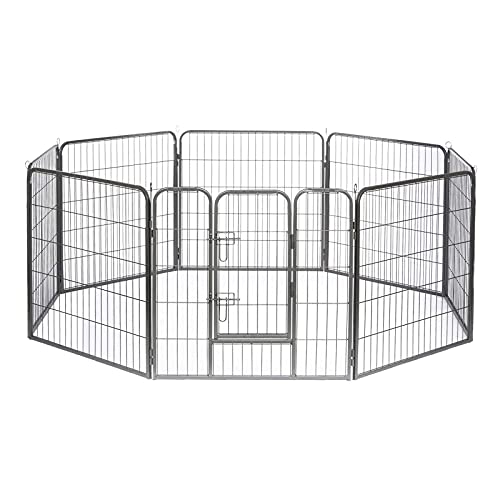 tectake® Hundgård, Valphage 8 Sektioner, Hundhage, Robust och Hopfällbar Lekhage för Hund, Kanin och Små Husdjur, Enkel Montering, Utomhus och Inomhus, Säker Dubbel-spärr - 100 cm