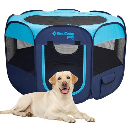 KingCamp valphage, lekhage för husdjur, bärbar valphage, lekhage för hundar, katter, valpar, inomhus och utomhus, för hemmet med bärväska och pinne, blå M