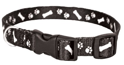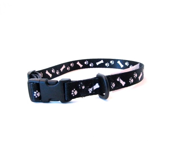 Svart Valphalsband Med Tassar & Ben 15mm x 35cm