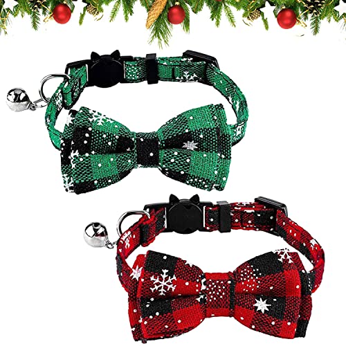 Julhalsband, 2 stycken små hundhalsband justerbart, katthalsband med rosett, hundhalsband fluga, valphalsband, hundhalsband jul, husdjurshalsband för katter och hundar
