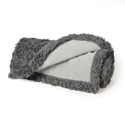 Hundfilt, vattentät, tvättbar hundsoffa, plysch- och halkfri hundfilt med supermjuk sherpa-valpmatta, husdjursfilt, 75 x 60 cm, L tgrå/DK grå