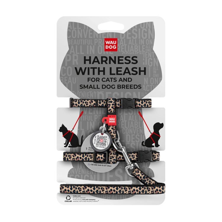 WAUDOG Kattsele Valpsele med Smart-ID bricka Leopard (10mm x 25-40cm)