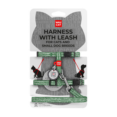 WAUDOG Re-Cotton Kattsele Valpsele med koppel (Grön)