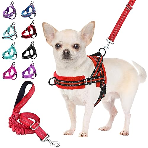 Haapaw Set med hundsele och koppel, inget drag, justerbar, reflekterande, step-in-valpsele med förtjockad vadderad väst för extra små/små medelstora hundar