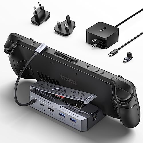 JSAUX dockningsstation och 45W laddare, kompatibel med Steam Deck, 6-i-1, med HDMI 2.0 4K@60Hz, Gigabit Ethernet, 3 USB A 3.0 och USB C laddare, kompatibel med Valve Steam Deck, HB0603