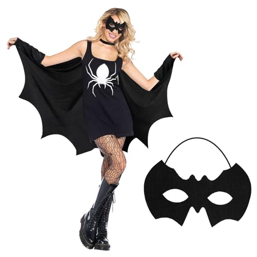 Aomig vuxen vampyr fladdermussla, fladdermusvingar cape maskeraddräkt med fladdermusmask, män fladdermus häxa cape kostym för halloween cosplay, Svart – 100 x 160 cm, 100*160cm