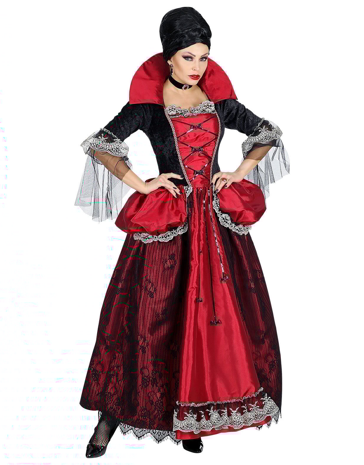 Boland - Dräkt för vuxna, vampyr, kejsarinna, klänning med krage, vampyr dam, spindlar kvinna, karneval, halloween, temafest, skräck