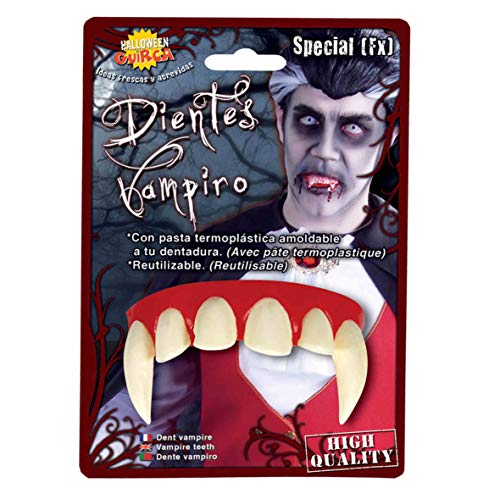 FIESTAS GUIRCA | Vampyrtänder med kors - (falska tänder med termoplast) - smink för halloweendräkter, vampyrer, skräckfester och cosplay - vit