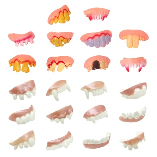 CWPFVQA 12 st roliga proteser med 10 st vampyrproteser, roliga tänder, halloween vampyrtänder, skämttänder för vuxna, lämplig för halloween, temafester