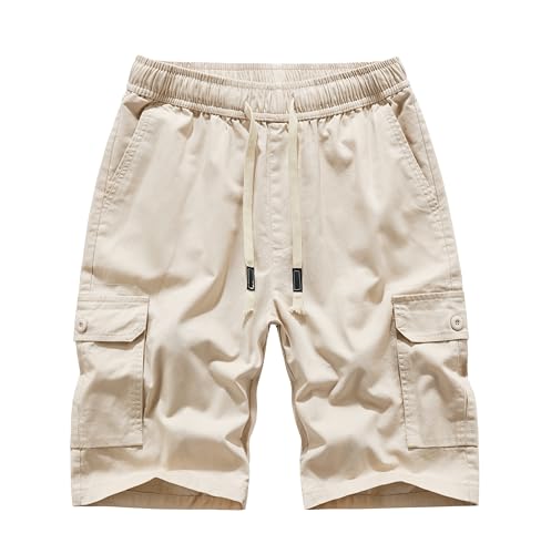 MakingDa Chino cargoshorts män 5 fickor elastisk midja dragsko sommar arbetsshorts smal passform enkel komfort smarta shorts golf joggingbyxor vandring strid vardag promenader semester strand, Aprikos