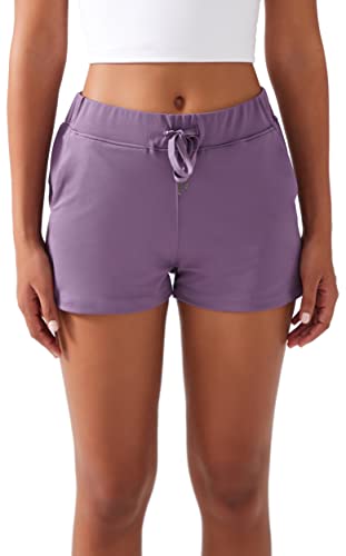 LOS OJOS Sportbyxor dam korta – träningsshorts för kvinnor – shorts med fickor för yoga, vandring, löpträning och avslappnad klädsel, violett, S