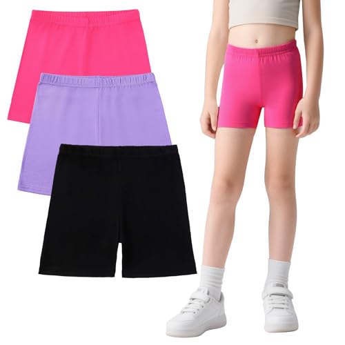 FILOWA Shorts för flickor barn bomull korta byxor 3-pack sport cykelbyxor med elastisk midja träningsbyxor mjuka färgglada fritid sportbyxor sommar gym cykling vandring joggingshorts, storlek 110–164