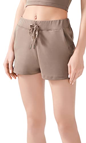 LOS OJOS Sportbyxor dam korta – träningsshorts för kvinnor – shorts med fickor för yoga, vandring, löpträning och avslappnad klädsel, kaki, XL