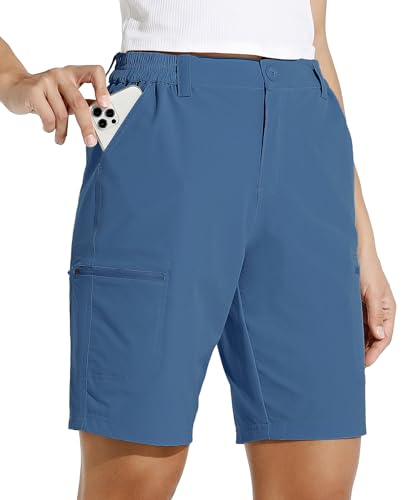 WILLIT Dam 25 cm vandring cargoshorts vandringsbyxor stretch golf aktiva långa shorts snabbtorkande utomhus lätta sommar resor shorts, Gråblå, L
