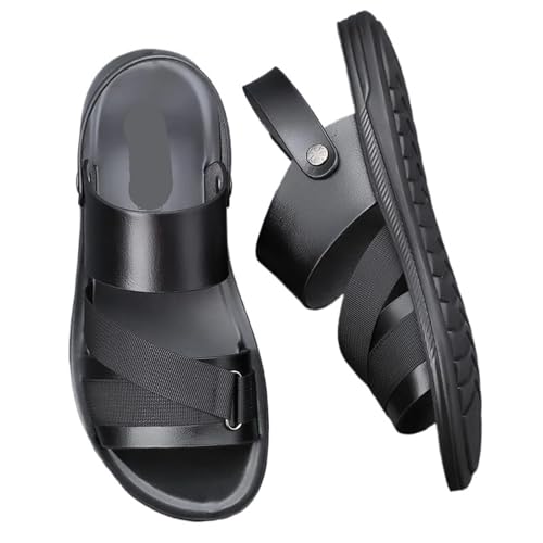 YXINAER Utomhus vandringssandaler tofflor för män läder lyxiga lägenheter sommar strand mjuka vardagliga utomhussandaler glider för män hem toffel, Svarta sandaler, 41 EU