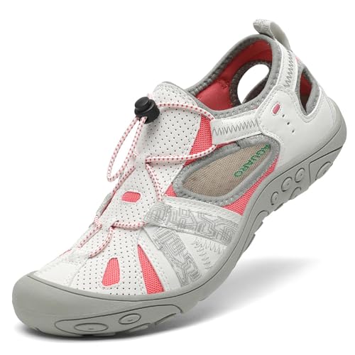 DREAM PAIRS vandringssandaler för kvinnor äventyrliga sommarsportskor utomhus, Grå/korall, 38.5 EU