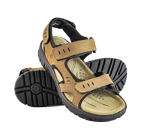 Zerimar Lädersandaler Herr Sommar | Lädersandaler | Läder Vandringssandaler Herr | Sandaler sommarläder | Trekking lädersandaler | Färg: Olivstorlek 44