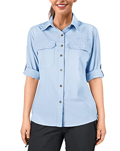 33,000 fot skjorta dam UPF50 UV skydd utomhus skjorta snabbtorkande fritidsskjorta långärmad funktionell skjorta vandringströja för fiske safari resor golf, Ljusblå, M