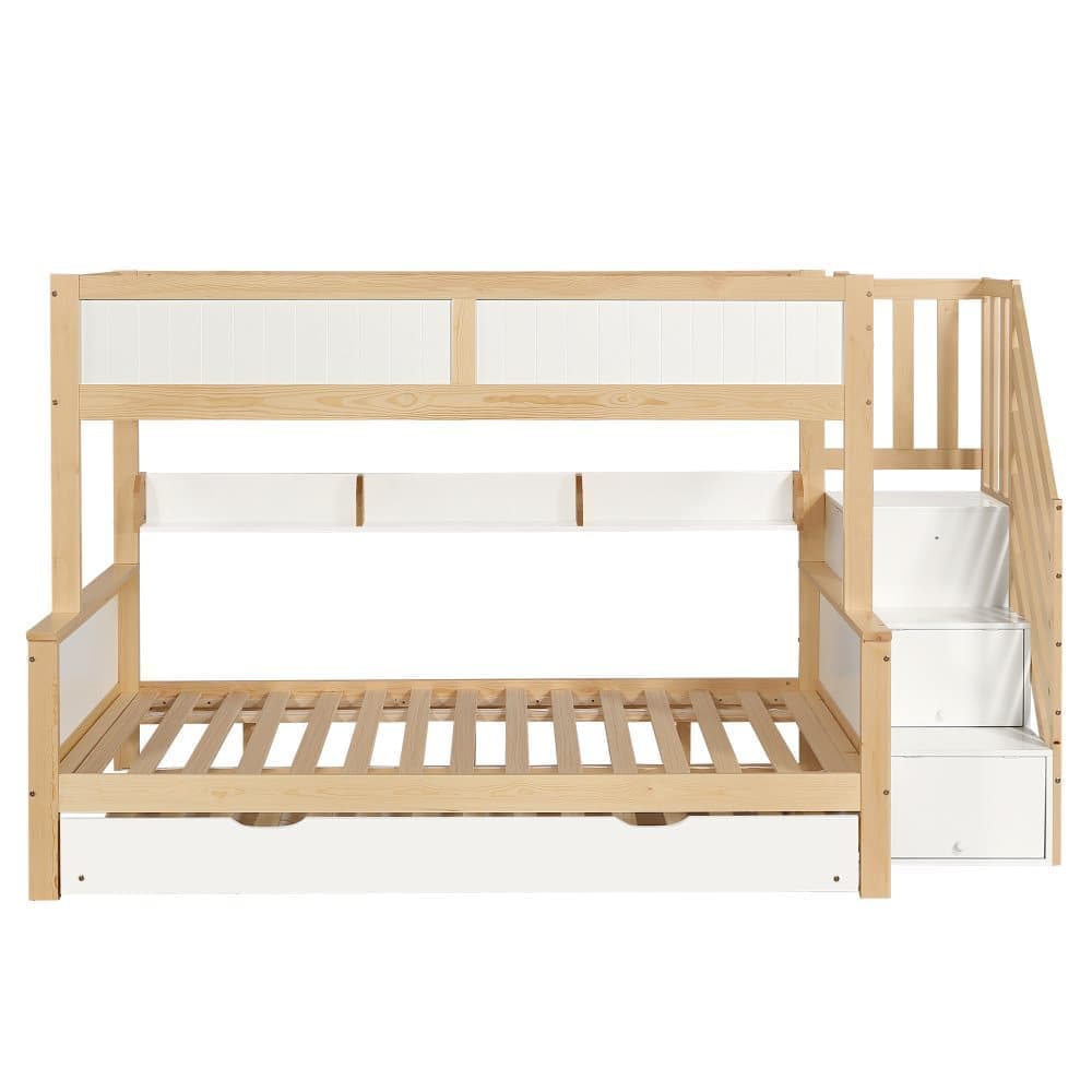 Våningssäng 90 x 200 cm + 120 x 200 cm + utdragbar säng 90 x 190 cm vit och natur
