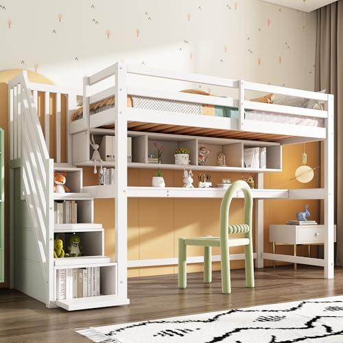 vidaXL Våningssäng med skrivbord & stege vit 140x200 cm massiv furu