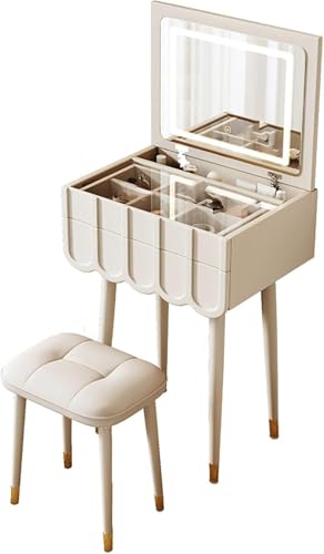 Vanity Desk With Mirror And Lights,vanity Desk,small Vanity Table For Bedroom,large Drawer, Compartmentalized Storage,flip-top Design Dresser, 3 Adjustable Lighting Modes, (white) (Color : Whi (White