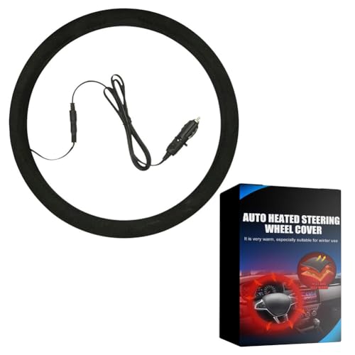 Uppvärmbart rattskydd bil, 12 V, 38 cm, bilrattvärmare, varm rattvärmare, överdrag med cigarettändning, rattskydd, universellt rattskydd, mocka, rattskydd för vinter, vans lastbilar
