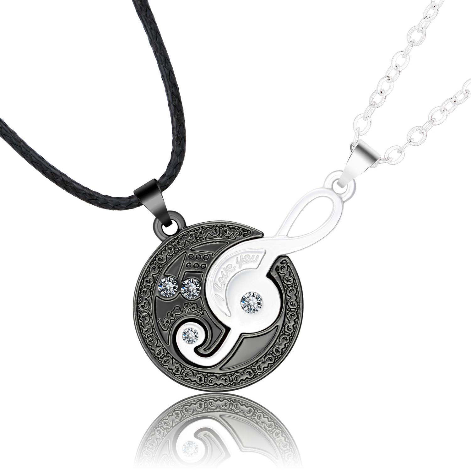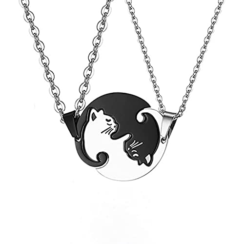 Oneroomone Katthalsband, par halsband vänskap katt, vänskapshalsband med svart och vitt katthänge, för herr och dam par