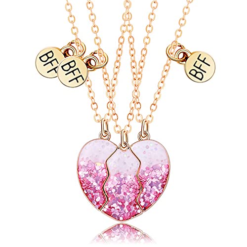Cosysparks BFF-halsband för 3 flickor, 3 vänskapshalsband för 3 flickor, magnetiskt hjärta, vänskapshalsband, matchande halsband för bästa vänner, smyckesgåva för flickor (rosa)