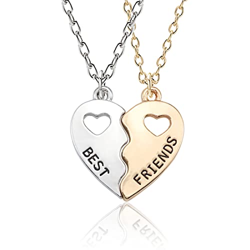 Set med 2 BFF halsband vänskapshalsband bästa vänner för flickor födelsedagspresenter kedja hänge gåvor (silverguld)