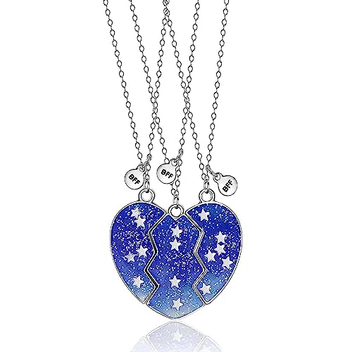 Cosysparks BFF-halsband för 3 flickor, 3 vänskapshalsband för 3 flickor, magnetiskt hjärta, vänskapshalsband, matchande halsband för bästa vänner, smyckesgåva för flickor (blå)