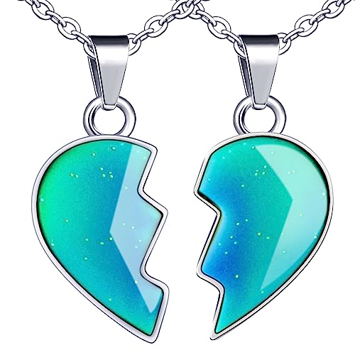 MicVivien bästa vän halsband färgskiftande hjärta vänskapshalsband, rostfritt stål matchande BFF-halsband för 2 flickor | temperaturfärg halsband tonåring flicka gåvor barn smycken, Rostfritt stål