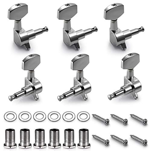 TIMESETL 6 delar gitarrmaskinhuvuden knoppar gitarrsträng inställningspinnar maskinhuvud tuners för elektrisk eller akustisk gitarr (3 vänster + 3 höger)