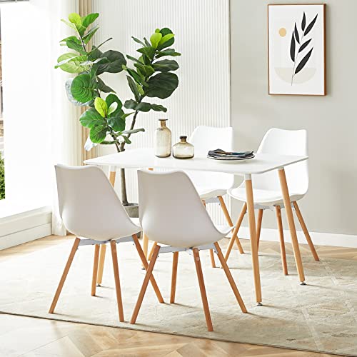 LafeuR Matrumsgrupp matbord med 4 stolar, rektangulärt köksbordsset matgrupp för kök matsal och vardagsrum (vitt bord + 4 vita matrumsstolar)