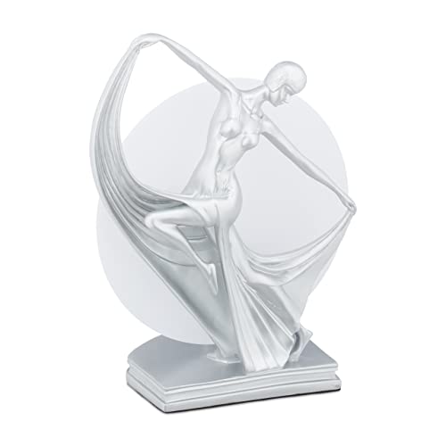 Relaxdays Bord, dansande kvinnofigur, indirekt ljus, E27-fattning, nattduksbord, vardagsrum, bord, silver