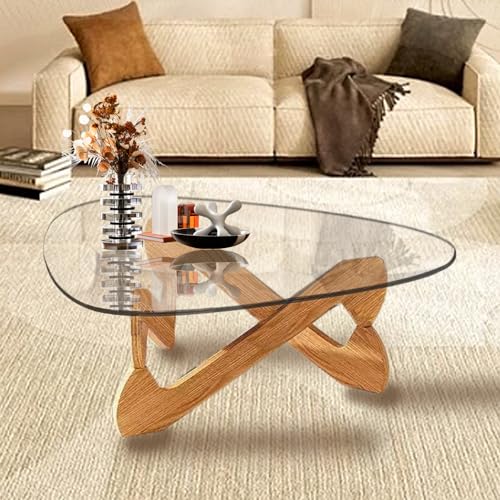 Sidobord, vardagsrum, glas, triangulärt bord, modernt vardagsrum, vardagsrumsbord med träbas, litet vardagsrumsbord, transparent, soffbord