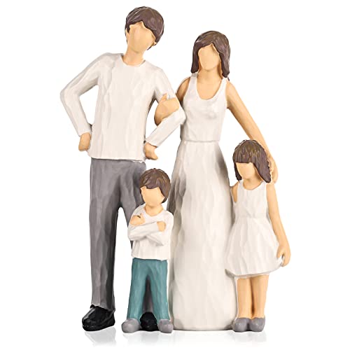 Familjefigurer dekor familj med 4 figurer, harts familj figurin skulptur, figurstaty, minnesgåva för föräldrar, lämplig för prydnad skulptur för heminredning sovrum vardagsrum bord