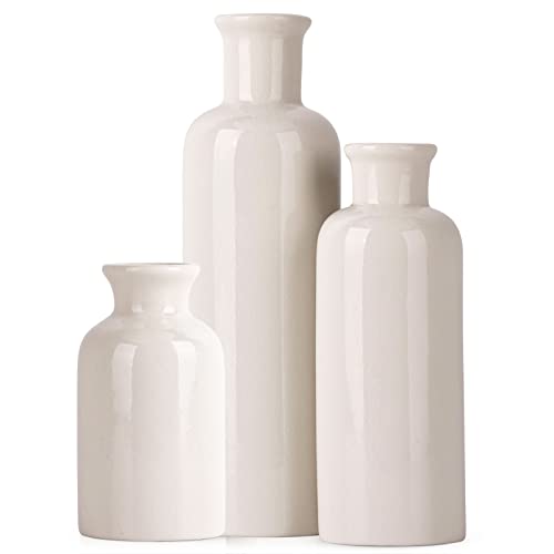 Bondgårdsdekor 3-delat set – vit sprakande keramisk vas för lantligt hem, bordsuppsatser, vardagsrum, bord, öppen spis och entré
