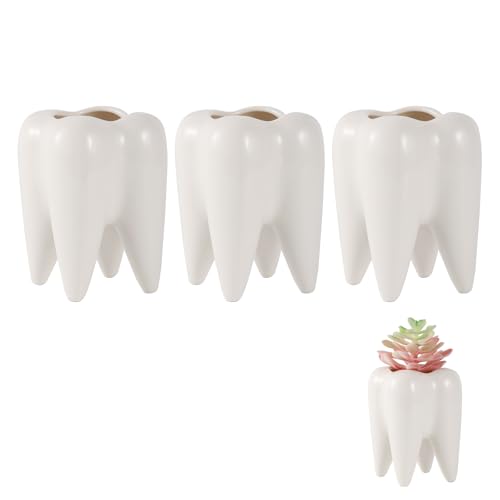 Fifibang 3 St Keramisk Suckulent Vas, Vit Saftig Kaktus Kruka, Mini Blomkruka för Tandläkare Gåvor Bord Vardagsrum Deco