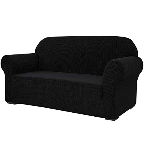subrtex Stretchig sofföverdrag, 1 st, för vardagsrum, fåtölj, mjuka möbler, tvättbar, sittskyddsöverdrag för barn/hundar (soffa, svart)
