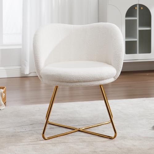 chairus Fuskpäls fåtölj för vardagsrum stoppad fåtölj, enkel tillfällig accentstol med metallben (vit)