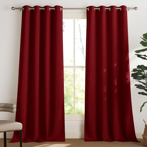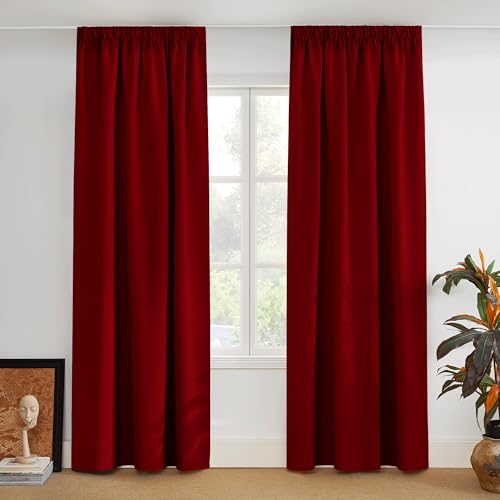 Pony Dance Ogenomskinliga mörkläggningsgardiner med öljetter för sovrum och vardagsrum, värmeisolerade gardiner, set om 2, termisk gardin mot värme sovrumsgardiner, H 228 x B 167 cm, röd